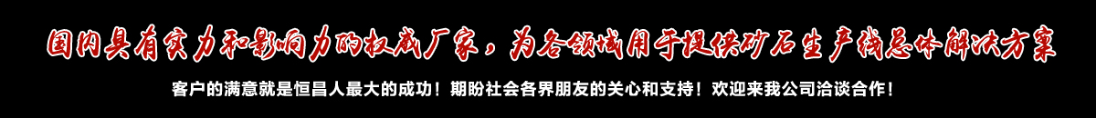 我公司主要以生產整套砂石生產線設備、砂石生產線配套設備、破碎機、磨粉機、選礦設備、水泥生產線系列設備為主,集自主研發、精益生產、獨立銷售為一體,歡迎廣大對砂石生產線設備興趣的朋友到我公司考察。相關配套設備有反擊式破碎機,顎式破碎機,螺旋洗砂機,輪式洗砂機,振動篩等,廣泛應用于選礦、冶金、建材、化工、電力、石油、煤炭、路橋交通以及化肥、煤氣等行業。 鞏義市恒昌冶金建材設備廠建廠二十多年來始終堅持“科技創新、質量保證、用戶至上”的經營理念,以科技為先導,不斷開發新…【 更多內容 】